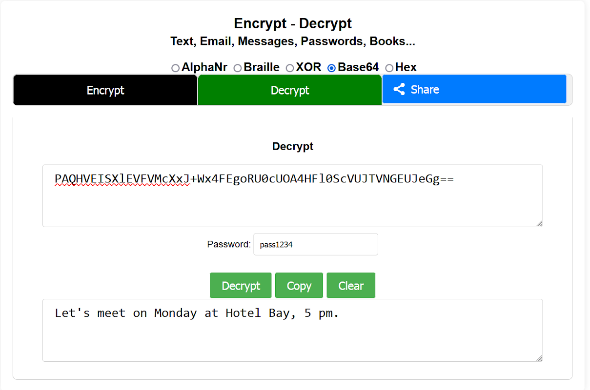 - 多种加密算法:该应用程序支持多种加密算法,包括AlphaNr、XOR、Base64、Hex和盲文。