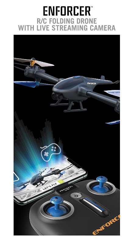 应用程序通过无人机的内置 Wi-Fi 信号将智能手机和平板电脑连接到 Protocol 的 Enforcer Drone。