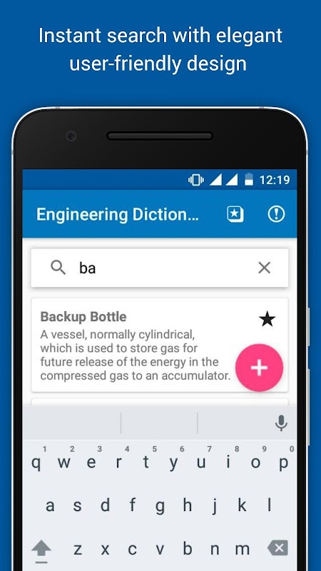 这本词典是专门设计工程专业的学生,谁不想来查找与他们的工程领域的技术术语和定义其专业的离线工具。其快速搜索算法可以帮助你在几秒钟分数搜索。下载并在你的工程字典在线免费学习和职业得到帮助!