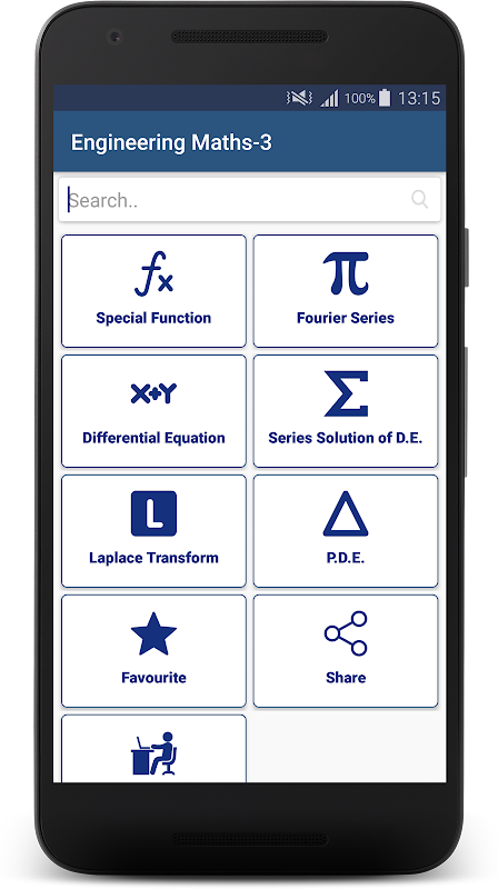 Engineering Maths 3 是一款可供工程专业学生在考试期间快速参考公式的应用程序。该应用程序对于在古吉拉特邦理工大学 (GTU)、索拉什特拉大学、古吉拉特邦大学等各所大学或 IIT 或 NIT 等大学的工程专业二年级学习的工程专业学生非常有用。该应用程序具有简单易用的用户界面,可用于快速参考基本数学积分公式或微分公式。该应用程序显示了必要的工程数学公式以及详细说明的方程式和图表。您甚至可以使用手机上提供的各种消息应用程序与您的朋友分享公式的屏幕截图。