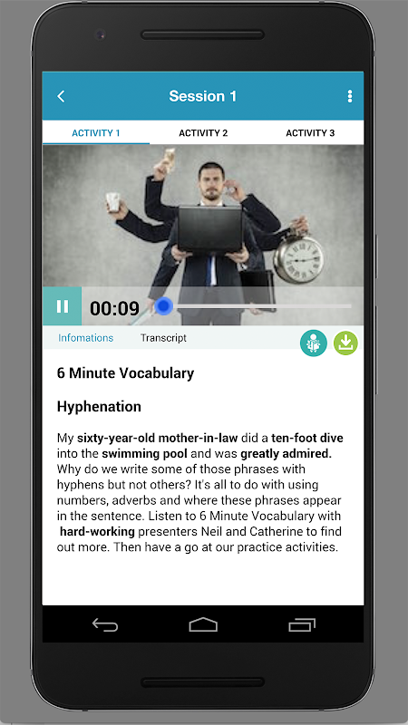 - Each lesson comes with audio, transcript and vocabulary list, which help you to improve your English Grammar and expand your English Vocabulary.