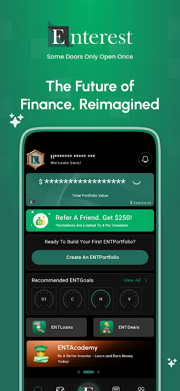 ENTEREST 是一个新一代金融科技平台,旨在赋能年轻创业者和投资者,助力他们开启财富之旅。我们秉持负责任的投资理念,将高回报机会与强大的风险管理相结合。我们的核心使命是教育用户,提升金融素养,并提供基于人工智能的投资组合管理,以满足个人目标。与传统机构不同,我们只有在您成功时才能成功——我们通过透明、数据驱动的战略,专注于长期增长并保障您的财务未来。