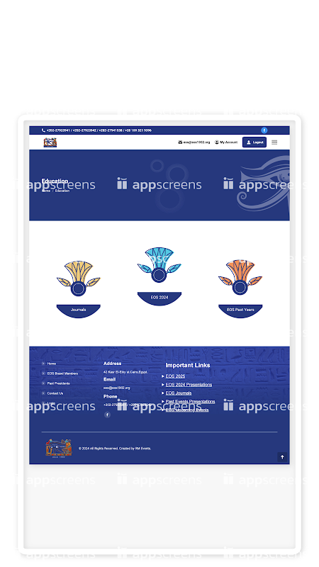 EOS application for Egyptian Ophthalmological Society all concern events information events education materials all announcements the board members users can login to the account mentioned before and find all your personal information for your society membership status make subscription and enjoy all even't and educational materials