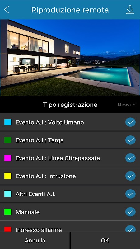 配置 EPM View 应用程序并将其与 NVR / DVR 录制设备相关联非常简单,这也归功于专有服务器上的 P2P 连接。框出一个简单的二维码就足够了,所有配置都将立即学会。在其他智能手机上共享也是如此。