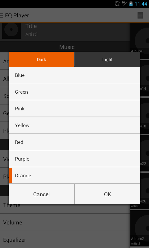・テーマ(ダーク・ライト)と色(青・緑・ピンク・黄・赤・紫・オレンジ)の変更機能