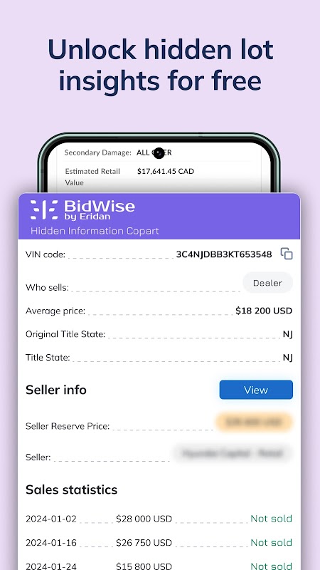 Eridan 出品的 BidWise 是一款移动应用,专为使用美国在线汽车拍卖(包括 Copart 和 IAAI 等平台)的买家打造。