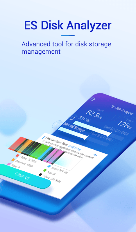 ES Disk Analyzer - storage space is an advanced tool for disk storage management on your phone or tablet. It provides a way to help find new files, large Files, redundant files and directories on storage card. With more useful functions like image compression and app junk files cleaning, storage could be freed up and files could well organized and presented in a structured way. You could easily acknowledge your device’s storage situation within ES Disk Analyzer.