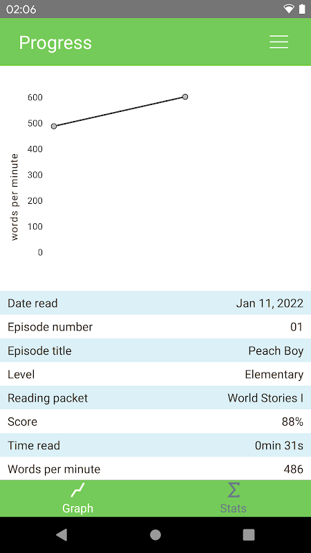 The app measures how long it takes you to read each story. To do so, it uses standard words per minute. It also checks if you are speed reading correctly by giving you feedback. This feedback helps you to continue to practicing speed reading effectively.