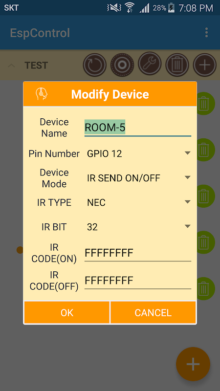 이 앱을 사용하기 위해서는 esp8266 모듈에 espcontrol 블로그에서 제공하는 프로그램을 업로드 하여야 합니다.