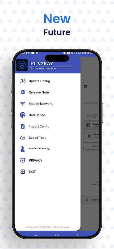 一个基于调整的易于使用的互联网 ET V2RAY 应用程序,用于增加安全性并提高在线活动的速度,例如上网、下载等...它通过位于您附近的强大高速、低延迟服务器安全地路由您的互联网。