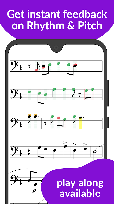 tonestro for Euphonium offers a large collection of songs, exercises and guided lessons for every skill level. Learn how to read music notes and improve your euphonium skills by playing many songs and exercises.