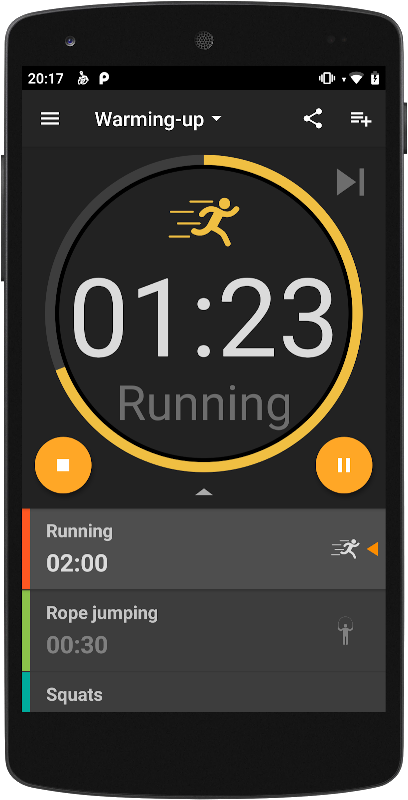 有时运动有无限的时间来完成它。因此,您可以使用“点击下一个”选项来标记此类锻炼,并且在您轻按屏幕之前,Evotimer不会移动到下一个锻炼(静止)。