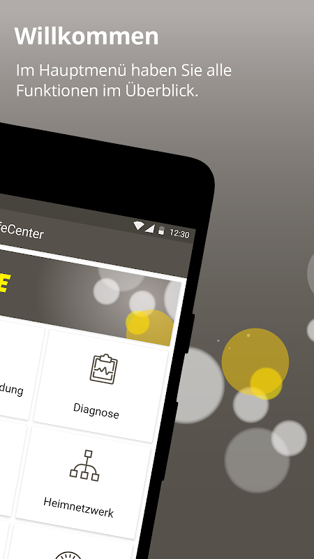 借助EWE帮助中心,您可以在家中轻松设置和管理Internet连接和WLAN。这个免费的应用程序为您提供了与家庭网络相关的多种有用功能,这些功能在应用程序的主菜单中以透明磁砖的形式排列。