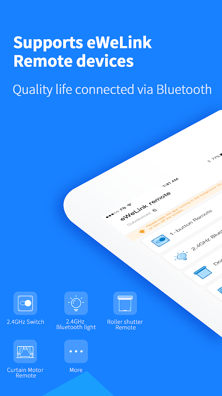 在手机上安装eWeLink远程网关应用程序,将其放置在家里,可以随时随地通过eWeLink应用程序控制2.4GHz设备。
