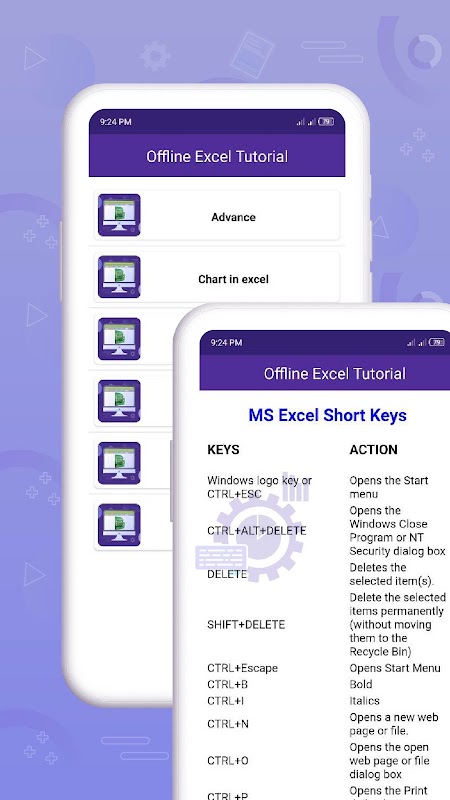 Budgeting, chart creation, data analytics, and much more are all available at your fingertips. Create, view, edit, and share files, charts, and data with the Excel spreadsheet and budgeting app. With on-the-go budget and expense tracking integration, Excel's built-in file editor allows you to manage your finances. We make it simple to evaluate and analyse data, update templates, and do other things. This is the excel complete tutorial application. Everyone needs to complete this work with speed and keyboard shortcut keys helps to improve the speed of work. This All excel shortcut keys application is suitable both for beginners and advanced and as well as for schools and businesses. Here are some of the features in excel shortcut this app that will help you learn ms excel. Complete excel offline application helps to increase your Excel knowledge. Use this Excel formulas and function app to learn how to use Excel. In this Full excel course offline app is very easy to use and easy to understand.