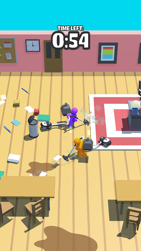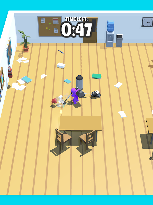 Its time to soap up! Hoover, bag and mop up all the gross dirty things in the room to get it sparkly clean. Get paid for your efforts and expand your cleaning crew and tools.
