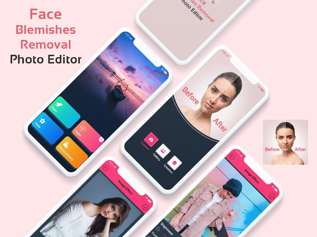 =:It will give you a natural retouched treatment without affecting your skin color. Face Acne Remover photo editing tool works on all skin tones and complexions to remove those face pimples and imperfections to give the most natural look.