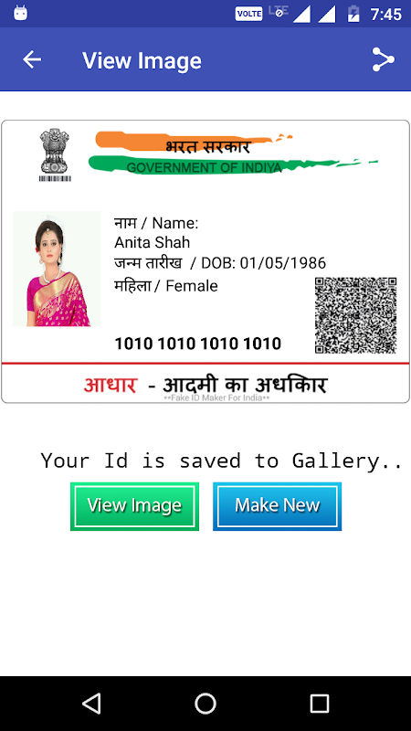 REMEMBER: It is a prank app. The IDs generated by this free application are for entertainment purpose only. The IDs should not be used for any official business because they are not an actual ID.