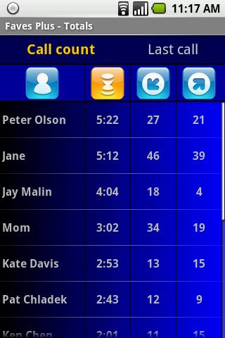See talk time, last call, number of in and out calls per contact;
