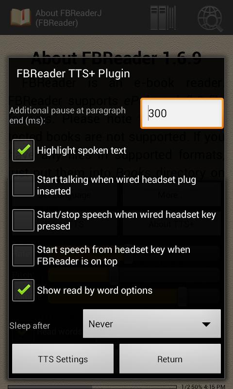 关于FBReader TTS+ Plugin