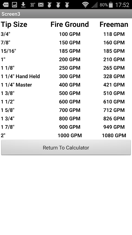 摩擦损失计算器,所需消防流量,油轮班车/农村水利泵出口压力计算器。用户可以输入任何数值到每个文本拖曳找到在给定长度的软管的摩擦损失量。该应用允许使用任何数字,以适应新的软管和系数。我提供了与普通软管系数应用两个参考页伴随着共同的尖大小和每分钟加仑每一个针尖大小。