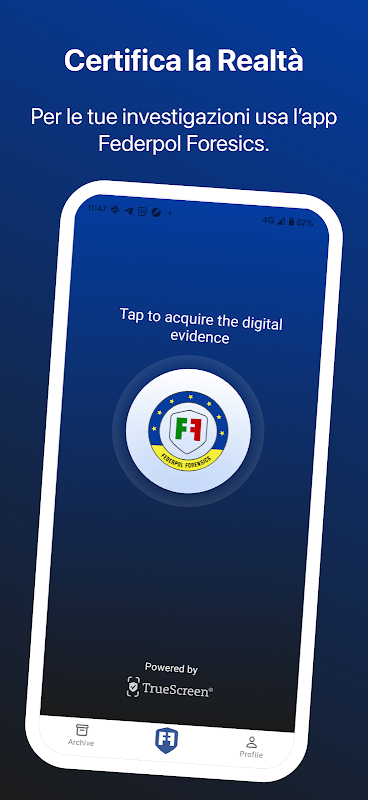 为了进行认证,Federpol Forensics 使用专利算法和 TrueScreen 技术分析导入的数据并确保不更改;然后生成由官方认证机构认证的法医报告,证明信息的完全可靠性。