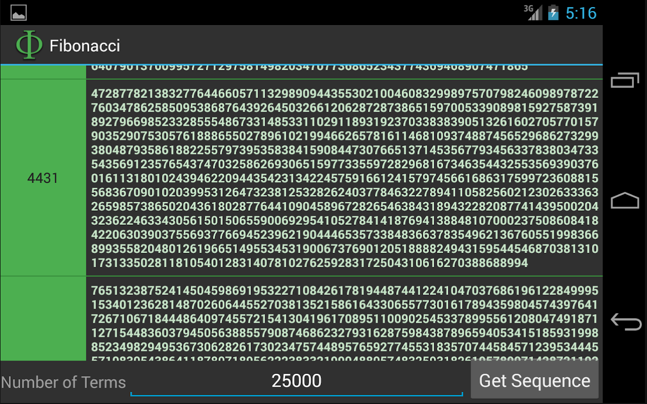 你知道吗,斐波那契序列的100,000'th期限为20899位长?了解这一点,与此应用程序!