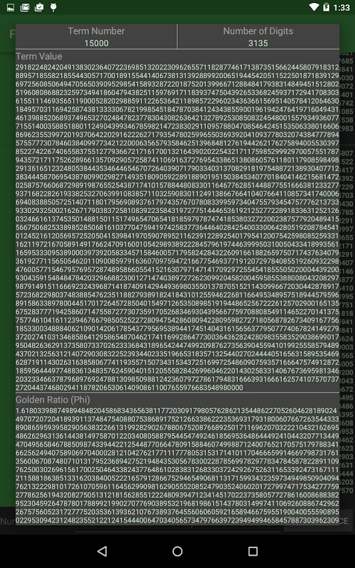 除了序列,这个应用程序显示有关的每一项细节,比如位数和黄金比例。