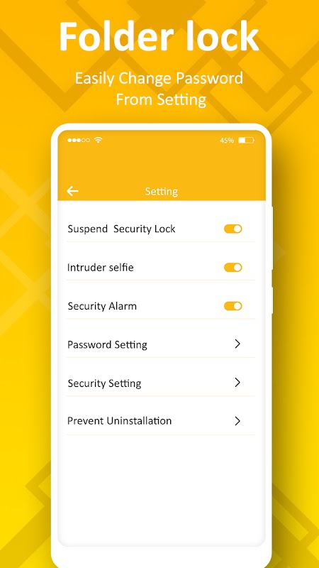 文件锁:文件夹密码锁应用程序可让您对 Android 手机中的个人文件(例如:照片、视频、文档、钱包卡、联系人、笔记和录音等)进行密码保护。