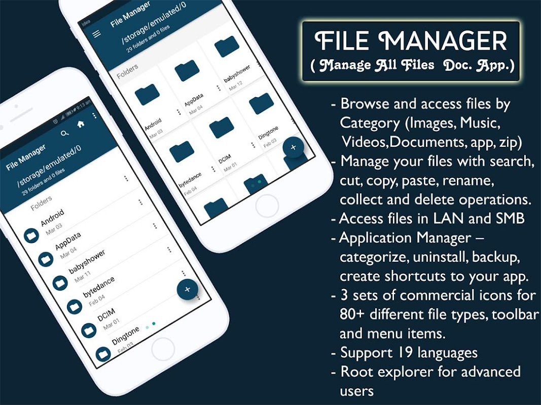 ◆ supports multiple 100 + Languages file manager pro efile explorer file manager file transfer file komender.