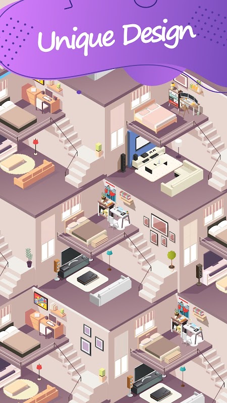 您将获得每个完成级别的奖金。打开装有物品的箱子,改善房屋内部。