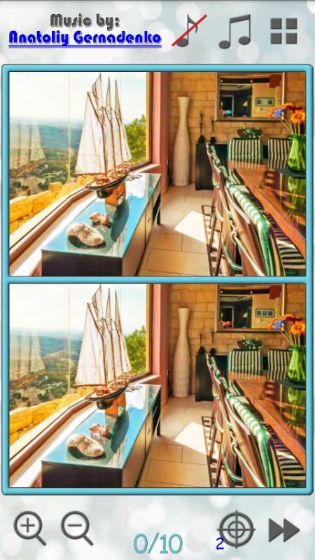 The classic puzzle game of Find the Difference Two, where you need to spot 10 differences in each pair of pictures. All pictures are sorted into 10 different categories and interesting. This game is well developed attention, visual memory, and simply helps relax under the beautiful music Hang. Perfect for both children and adults.