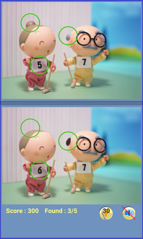 比较两个图片,并找出五个不同。