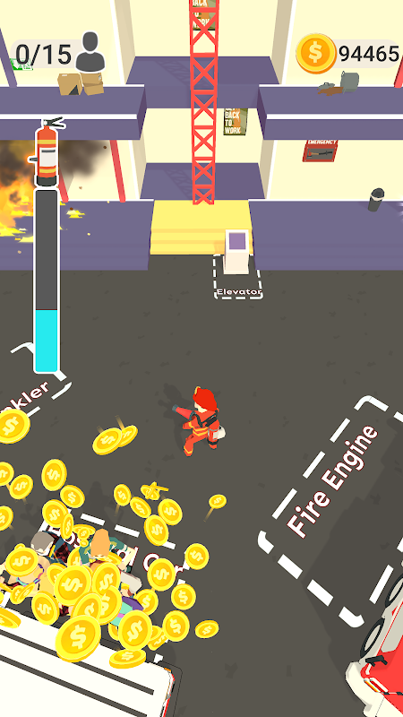 你需要携带水枪灭火,拯救房间内的人员。