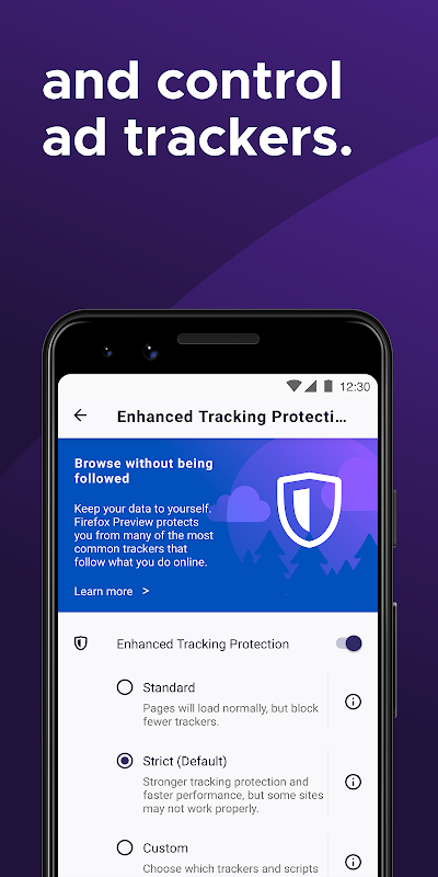 Firefox 浏览器 Android 版为您提供自动化的隐私保护和流畅快速的上网体验。我们知道,每天都有成千上万的在线跟踪器在跟踪您的上网活动,收集您的上网足迹信息,拖慢您的上网速度。而 Firefox 在默认情况下会拦截 2000 多种跟踪器;如果您想进一步定制您的浏览器,还可以使用广告拦截器附加组件。选择 Firefox,您可在移动浏览器中兼享安全隐私保障与高速上网体验。