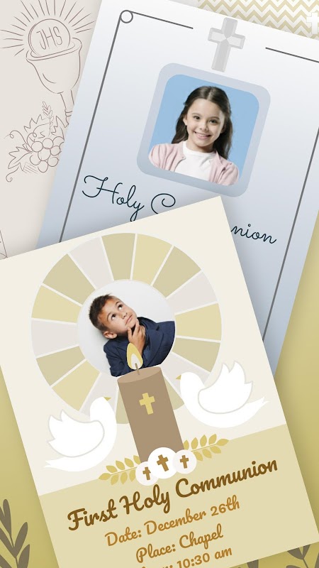 使用此应用程序设计您自己的第一张圣餐邀请函和祝贺卡。使用您创建的原创个性化卡片展示您的爱和支持!它易于使用且免费使用。
