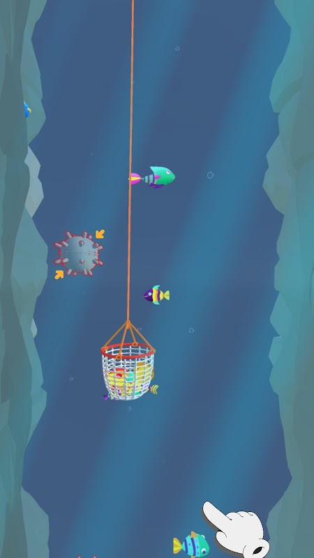 Go through hoops to increase the capacity and beware of mines because it will shrink your net and release some fish!