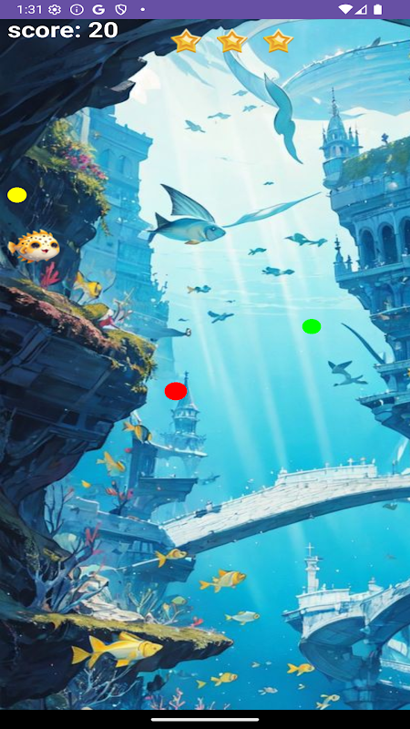 🌊 🐟 飞鱼球是一款色彩缤纷的水下街机游戏,你将引导一个有趣的角色穿越珊瑚洞和海流。躲避红色障碍物,收集黄色和绿色的球,并提高你的分数。所有生命耗尽后,回合结束,你的最佳成绩将显示在最终屏幕上。