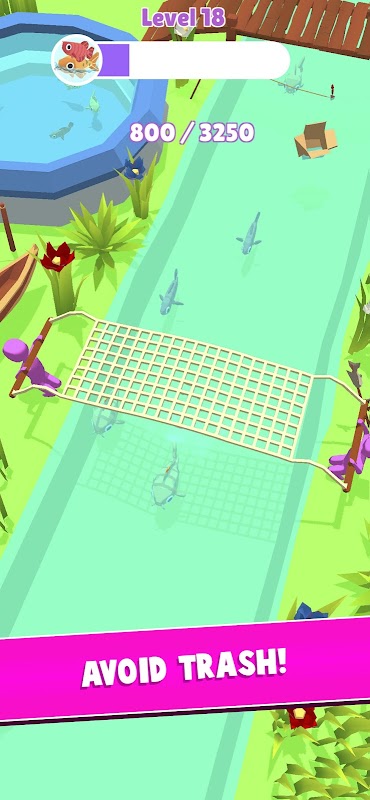 Drag the net full of fish while avoiding debris and bombs.