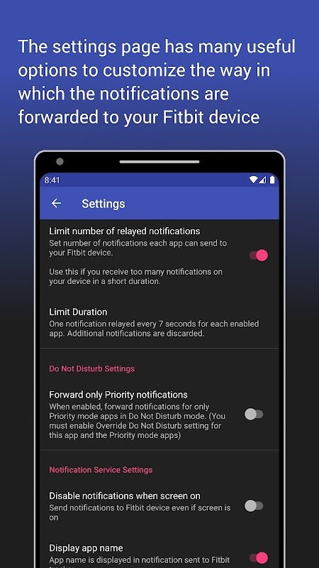 3.如果您使用“请勿打扰”模式(也称为静音模式),那么您将不会在Fitbit设备上收到通知,因为Android会禁用通知转发。要解决此问题,您必须更改“适合通知”应用的通知优先级。该应用程序中提供了解决此问题的说明。