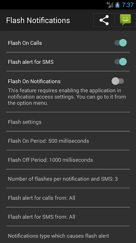 Receive alerts through the flash on your phone. flash on calls & notifications will use your camera flash to make light blinking signals during an Incoming call, SMS or any notifications.