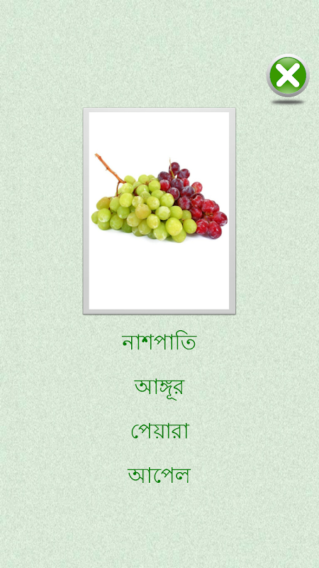 This app helps new language learner (kids to adults) to learn Bengali words in easiest way, builds vocabulary and pronunciation of basic words in categories like Alphabet, Numbers, Body Parts, Birds, Animals, Vegetables, Fruits, Colors, Shapes, and Calendar. Key feature includes,