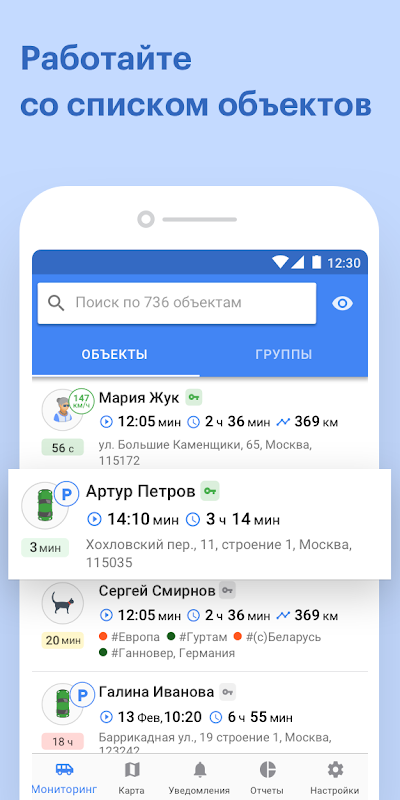 • 所有监控对象。获取有关运动参数和对象位置的必要信息,以及在线的最新数据。