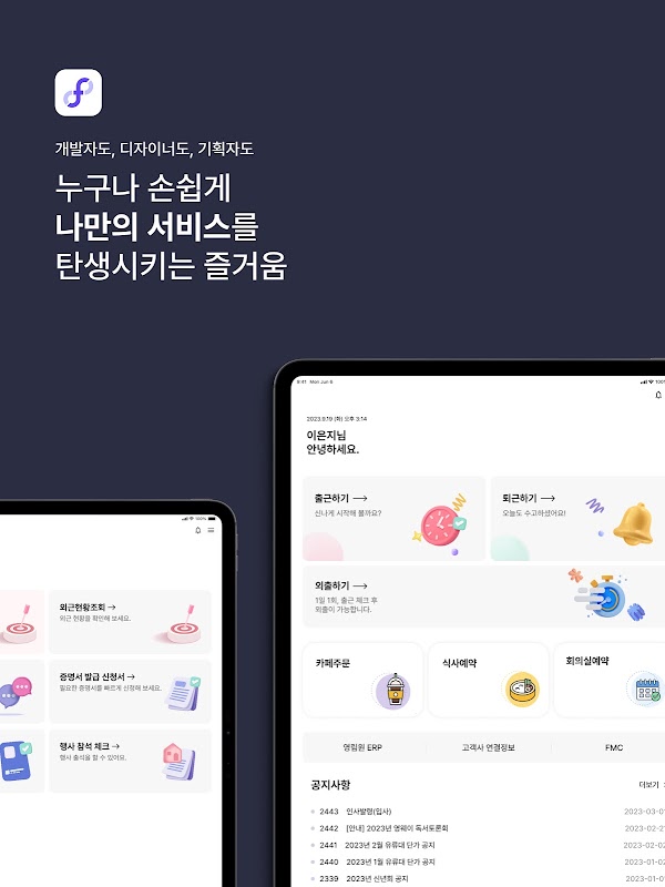 您可以直接转到在 Flextudio 中创建的公司应用程序、业务应用程序和社区应用程序。