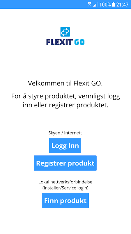 这个应用程序允许用户控制产品FLEXIT北欧和EcoNordic。