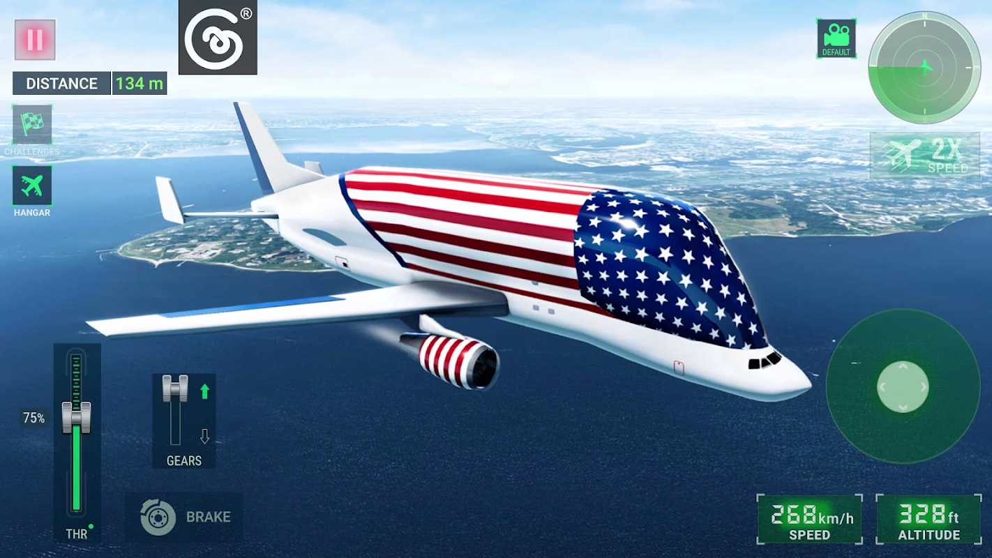 选择你喜欢的飞机,以自己的节奏探索广阔的世界。飞越闪亮的水域和雄伟的山脉。完成迷你任务,保持投入并赚取宝贵的游戏金币。