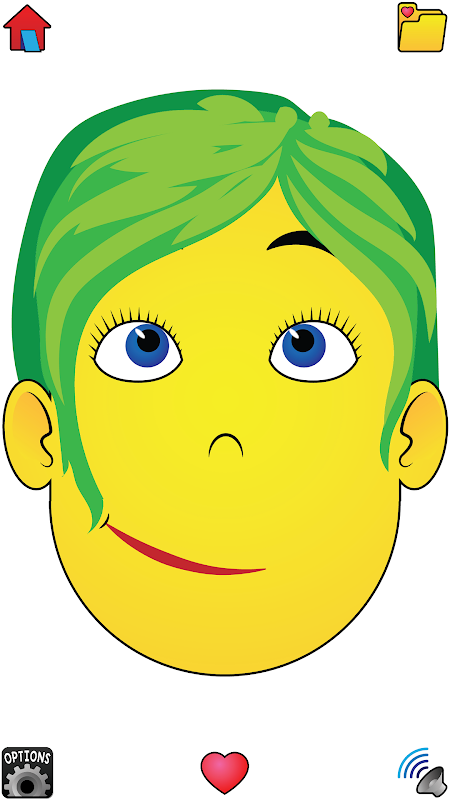 • 可以用一根、两根或三根手指滑动显示的面部区域,以改变眉毛位置(上半部分)、眼球方向(中半部分)和嘴型(下半部分)。