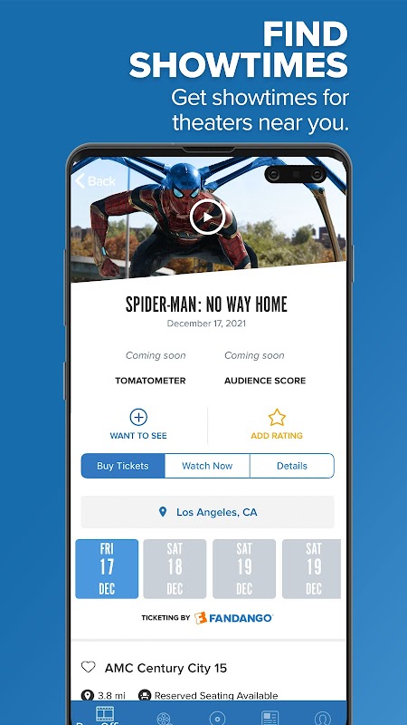 - 寻找电影票?保证您的座位并直接前往由 Fandango 提供支持的票务服务。