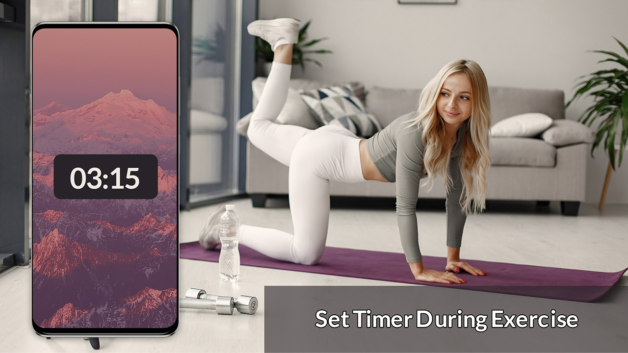 →这是出现在所有应用程序上的数字时钟。通过该系统,您可以创建自定义健身计时器,这些计时器一直停留在手机上,以跟踪您使用其他应用程序的进度。