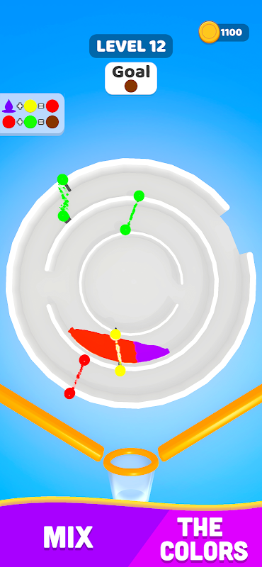 旋转迷宫,使液体流过大门以改变颜色并达到目标颜色!